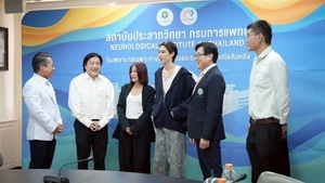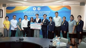 寄付の授与式は、バンコクにある神経学研究所の会議室で行われ、保健省副事務次官のタニン医師や研究所長のナパ医師らが出席し、心からの感謝を述べました。
