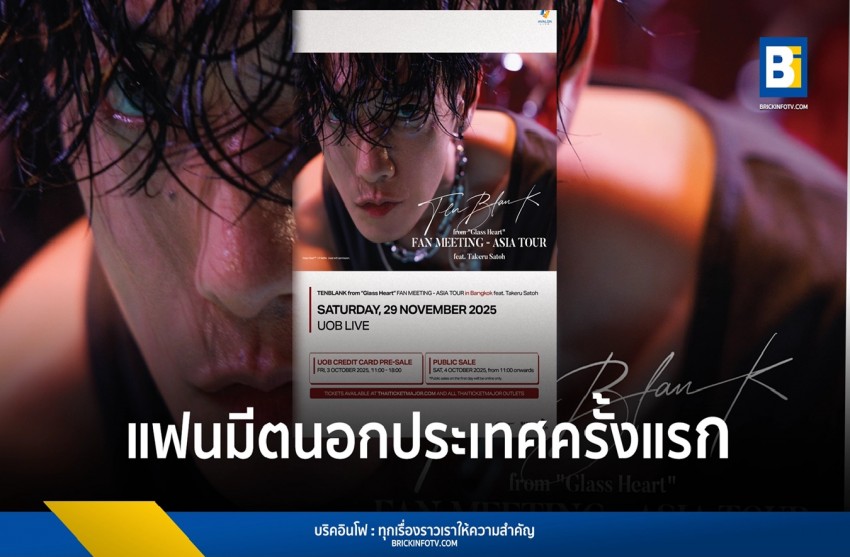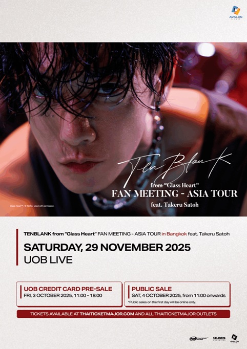 日本の著名な俳優、佐藤健さんのタイのファンにとって、待望の時がついに訪れます。初の公式ファンミーティング「TENBLANK from “Glass Heart” FAN MEETING - ASIA TOUR in Bangkok feat. Takeru Satoh」が、2025年11月29日(土)にUOB LIVEにて開催されることが決定しました。
