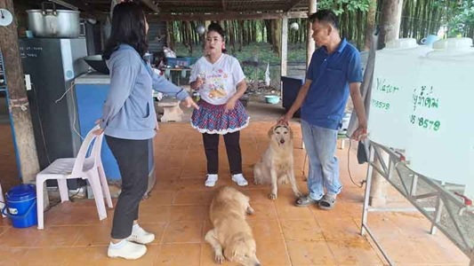 ウドーンターニー県で、走行中のトラックの荷台で、ゴールデンレトリバー2匹がのんきに交尾する様子が映っている動画が拡散され、人々の笑いを誘っています。