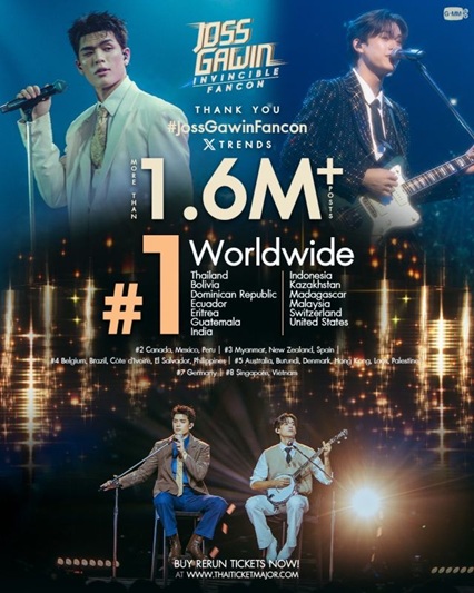終演後、関連ハッシュタグ「#JossGawinFancon」やキーワード「JOSSGAWIN INVINCIBLE」などがX(旧ツイッター)でトレンド入りを果たしました。