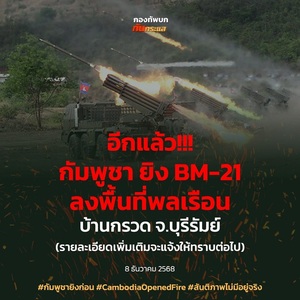 情勢を一変させたのは、カンボジア軍による民間人を標的とした攻撃です。カンボジア側は多連装ロケット砲「BM-21」を使用し、ブリーラム県バーンクルアット郡の民間居住区に向けて発砲しました。これにより、国境沿いの住民に直接的な危険が及んでいます。