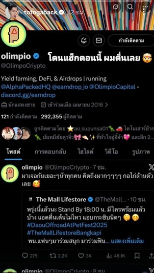 タイBLドラマ「Love in Translation」の主演で知られるオフロード・ガンタポン・ジンダタウィポン(Offroad Kantapon Jindatawepol)さんの個人のX(旧ツイッター)アカウント(@TOTOGABACK)が、何者かによってハッキングされたことが明らかになりました。