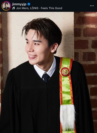 最近、ジミーさんは自身のインスタグラムに「この重要な節目を記念できることを誇りに思います。1月18日、タマサート大学ランシットでお会いしましょう。皆さんもぜひ、この瞬間に立ち会ってください」とつづり、アカデミックガウンを着用した写真を投稿しました。